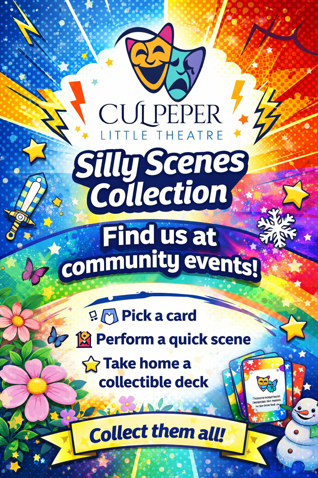 Culpeper Little Theatre is popping up at community events all over town—from Culpeper Con to Spring Into Awareness, Culpeper Pride, and beyond. Wherever you find us, you can jump in, play along, and take home a collectible Silly Scenes deck. The question is… how many will you collect?