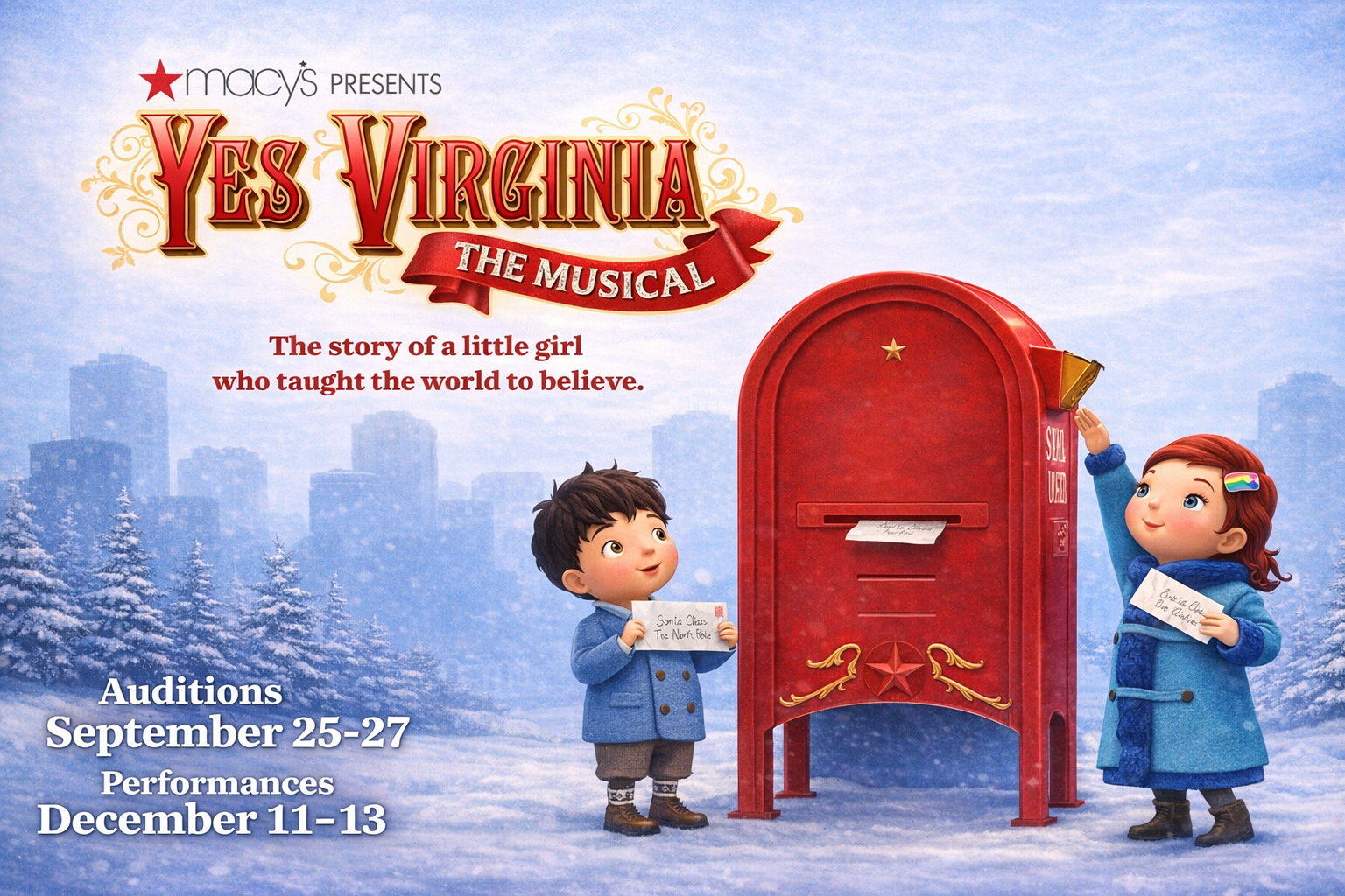 Based on the true story, this heartwarming holiday musical follows young Virginia O’Hanlon’s timeless quest to discover if Santa Claus is real—and reminds us all to believe in the spirit of Christmas.